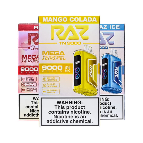 The Raz TN9000 brings a smooth, high-capacity option to the world of disposable vapes, offering up to 9,000 puffs and a 12mL e-liquid tank for long-lasting use. With 50mg (5%) nicotine strength and a built-in 650mAh rechargeable battery, it's designed for convenience and consistent performance. Charging is simple with USB-C, so you're always ready to go. Whether you're into bold or mellow tastes, Raz Vapes makes it easy to find your match. Explore the full selection of Raz TN9000 flavors and enjoy a reliable, stylish option that fits your everyday routine. The Raz TN9000 is built to keep up.